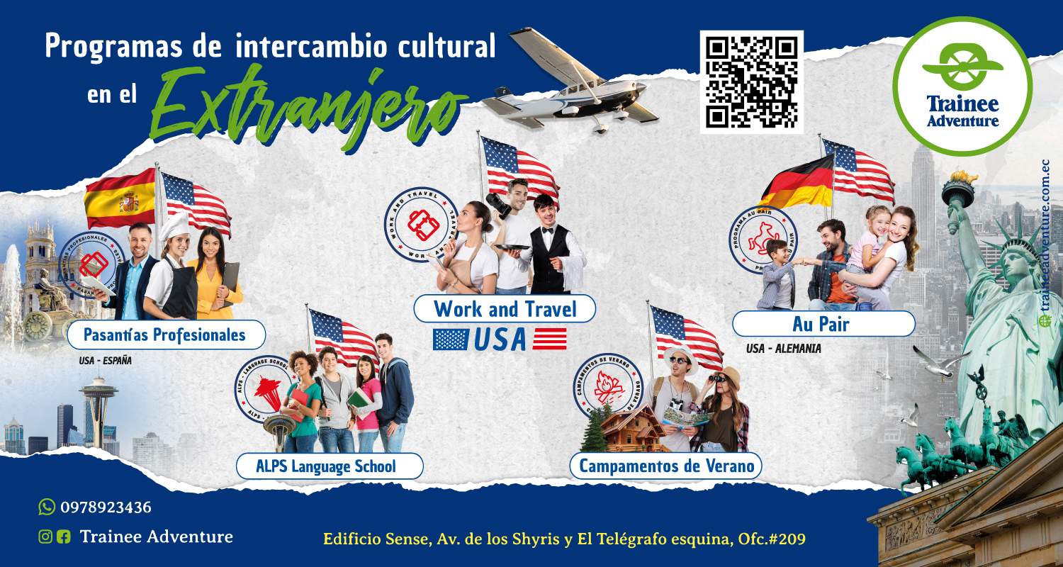 Trainee es una agencia ecuatoriana que ofrece oportunidades de estudio, viaje y trabajo en el exterior para universitarios, egresados y jóvenes profesionales, con el anhelo de desarrollarse profesionalmente, con ganas de vivir y aprender de una nueva cultura y estilos de vida diferentes, de desarrollarse en su campo laboral y de estudios y volverse más competitivos en esta actual sociedad globalizada.